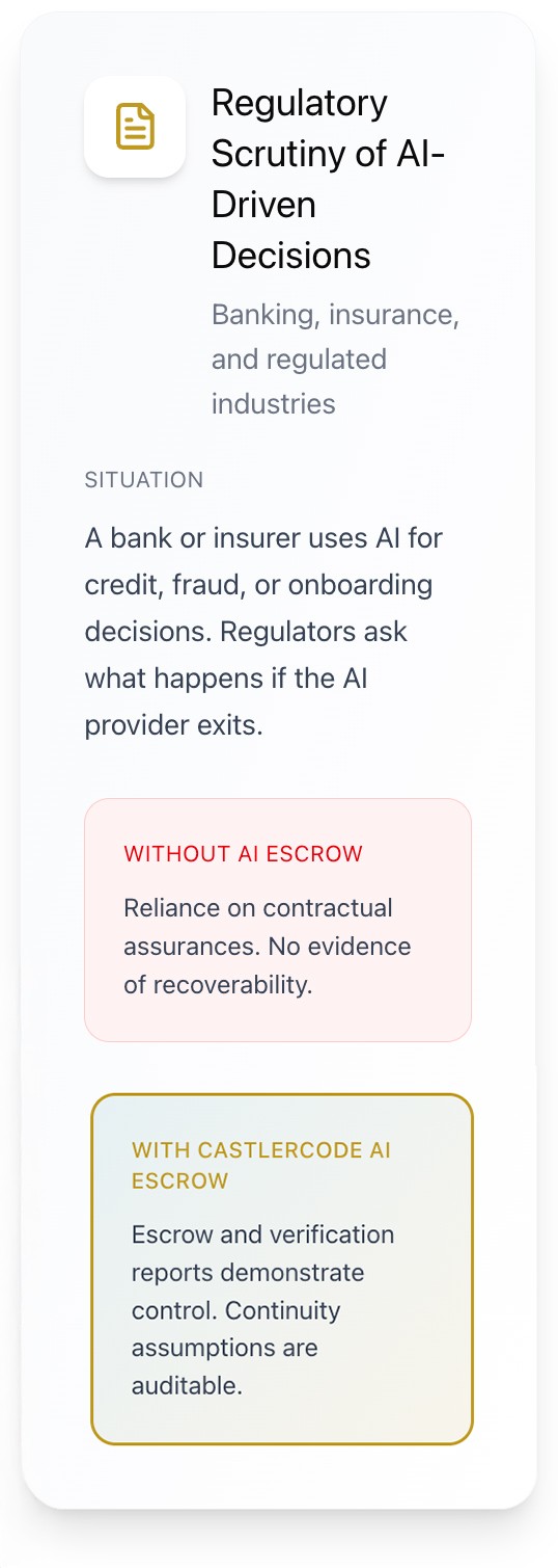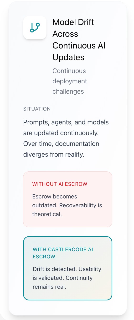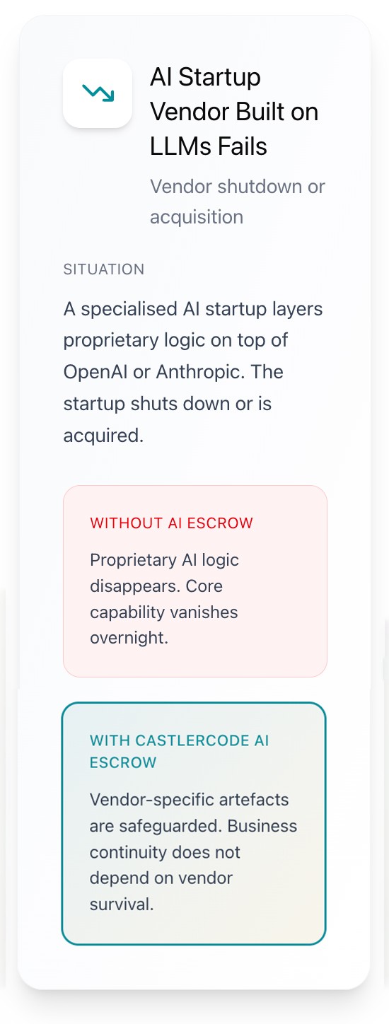 Escrow secures access while SBOM provides visibility into software dependencies; together, they form a foundation for true business continuity. CastlerCode helps enterprises move beyond reactive security toward structured, dependable trust in their critical software systems.